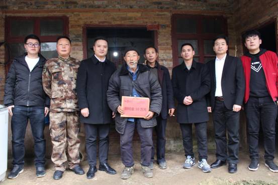 2019年1月19日下午,貴州陟翔保安總公司總經(jīng)理馮波、副總經(jīng)理陳春生攜同下屬保安公司總經(jīng)理邱元波、銅仁一鼎爆破公司副總經(jīng)理段麗莎、科技公司副總經(jīng)理馮偉等同志頂著刺骨的寒風(fēng),前往貴州省凱里市黃平縣舊州鎮(zhèn)楊花沖對(duì)當(dāng)?shù)匾回毨窬彝ミM(jìn)行幫扶慰問。