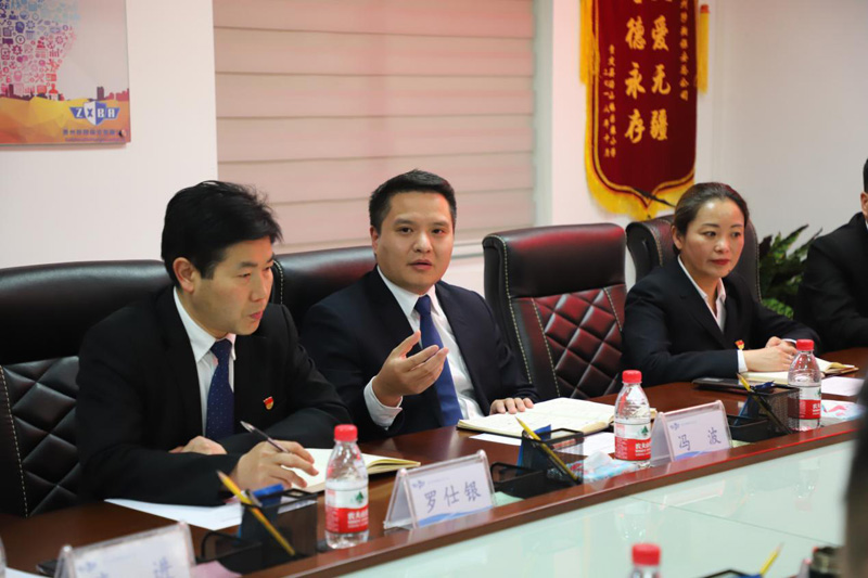 考察團(tuán)先后到達(dá)保安公司項(xiàng)目駐點(diǎn)貴州省人民政府、貴州省交通廳、成鐵集團(tuán)貴陽車輛段執(zhí)勤現(xiàn)場實(shí)地查看。隨后,在保安公司會議室進(jìn)行座談交流,總公司總經(jīng)理馮波主持會議。會上,總公司總經(jīng)理馮波對考察團(tuán)一行表示熱烈歡迎,簡要介紹了總公司發(fā)展歷程、業(yè)務(wù)內(nèi)容和運(yùn)營管理基本情況,安排觀看總公司宣傳片;畢節(jié)市建設(shè)投資有限公司黨委副書記、總經(jīng)理王旭東介紹了畢節(jié)市建設(shè)投資有限公司基本情況;貴州陟翔保安有限公司總經(jīng)理陳春生詳細(xì)介紹了保安公司情況;總公司股東代表羅仕銀介紹了保安分公司的運(yùn)作管理模式;參會人員進(jìn)行了交流發(fā)言。畢節(jié)市建設(shè)投資有限公司黨委書記、董事長楊小虎在發(fā)言中對公司的考察行程安排和熱情接待表示感謝,對公司的文化建設(shè)、多元化發(fā)展及疫情期間的公益活動表示認(rèn)可,并對雙方合作的可能性提出了看法。