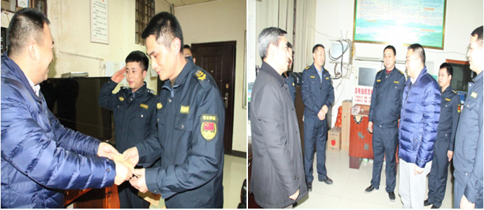 在新年元旦即將到來(lái)之際,2015年12月31日晚,總公司王訓(xùn)江董事長(zhǎng)趕赴銅仁,在銅仁本部總經(jīng)理陳葉、副總經(jīng)理劉興華、劉樹(shù)等陪同下,深入一線(xiàn),看望和慰問(wèn)堅(jiān)守崗位、履職盡責(zé)的金庫(kù)守護(hù)員工,對(duì)他們?cè)?015年的艱辛付出給予了充分肯定和高度評(píng)價(jià),并帶去了各級(jí)領(lǐng)導(dǎo)對(duì)員工的關(guān)愛(ài)、新年的祝福和期望,使員工倍受鼓舞和感動(dòng),一致表示要更加努力工作,以更好的工作成績(jī)回報(bào)公司的厚愛(ài)。王訓(xùn)江董事長(zhǎng)同時(shí)還看望和慰問(wèn)了客戶(hù)單位的工作人員。![]()
