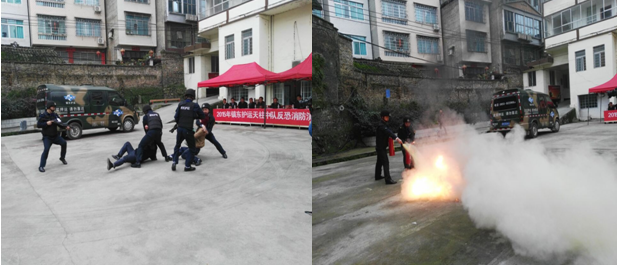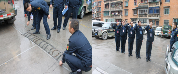 2015年12月11日,鎮(zhèn)東護(hù)運(yùn)有限公司黔東南州分公司組織天柱守押中隊(duì)在農(nóng)行大院舉行年終訓(xùn)練成果匯報(bào)暨反恐消防演練,并邀請(qǐng)了縣公安局治安大隊(duì)、縣銀監(jiān)局、縣人民銀行、縣工行、縣農(nóng)行、縣建行、縣電視臺(tái)等單位參加和觀看。訓(xùn)練成果匯報(bào)內(nèi)容主要包括反恐演練、隊(duì)列和擒敵術(shù)。反恐演練模擬運(yùn)鈔車(chē)在網(wǎng)點(diǎn)送鈔時(shí),押運(yùn)員遭遇歹徒徒手搶槍?zhuān)贿\(yùn)鈔車(chē)網(wǎng)點(diǎn)收鈔時(shí),解款員提箱返回上車(chē)過(guò)程中遭遇歹徒持刀搶劫;![]()