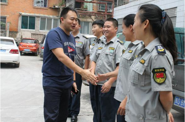 9月3日,銅仁本部總經(jīng)理陳葉率領(lǐng)行政人員一行人對城區(qū)各中隊(duì)進(jìn)行了節(jié)日期間值班情況的檢查,看望、慰問一線員工,并和員工一起觀看大閱兵。